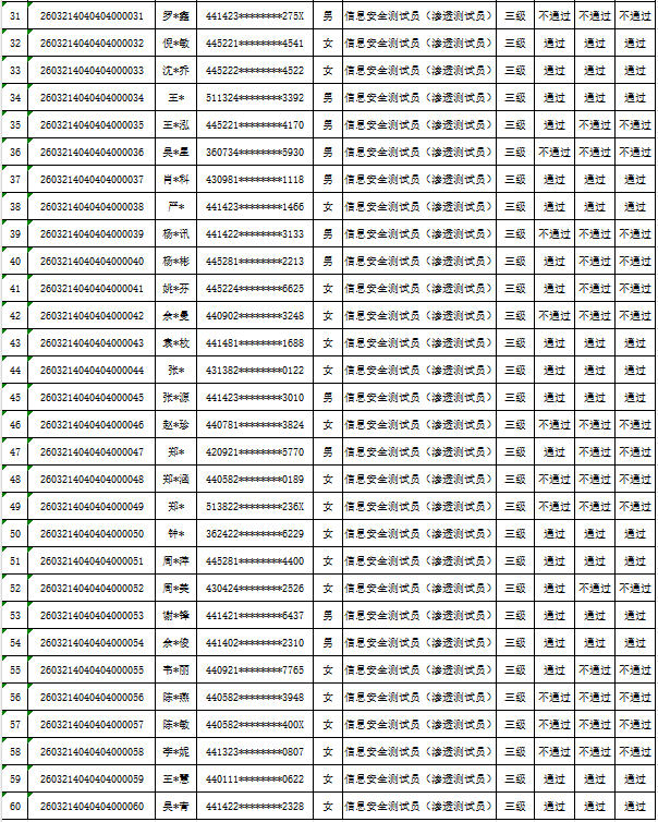 关于2026年第二期信息安全测试员(渗透测试员)(三级) 职业技能等级认定考试成绩查询通知
