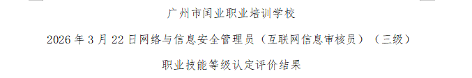 关于2026年第一期网络与信息安全管理员(互联网信息审核员) (三级)职业技能等级认定考试成绩查询通知