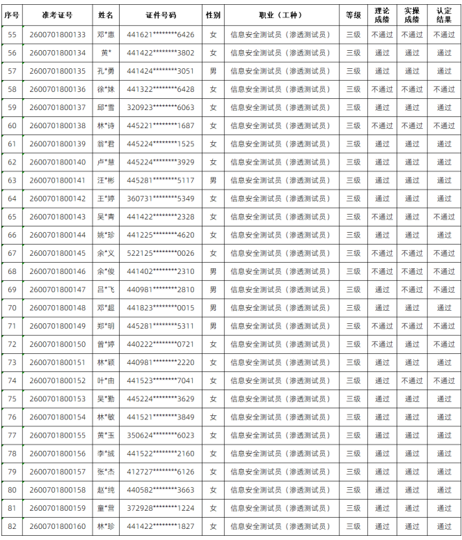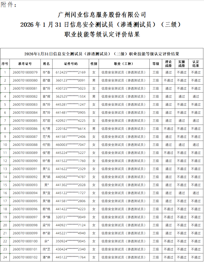 2026年第一期信息安全测试员(渗透测试员)(三级) 职业技能等级考试认定成绩查询的通知
